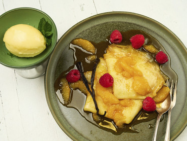 Crêpes Suzette mit Bio Mandarinen Sorbet