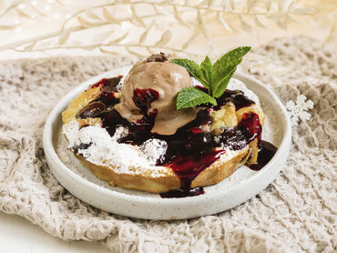 Clafoutis mit Schokoladen-Aprikosen Eis