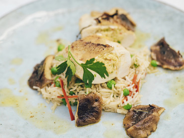 Hähnchenbrustfilet gefüllt mit Tiefseegarnelen (von Johann Lafer)