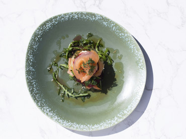 Türmchen von grünem Apfel, Räucherlachs und Rote Beete mit Meerrettichcreme (von Johann Lafer)