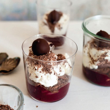 Nóg meer chocolade bestaat niet. Zachtsmeltend chocolade-ijs met extra grote knapperige stukjes chocoladenoga. Een scheutje vanillesaus maakt het dessert helemaal af.