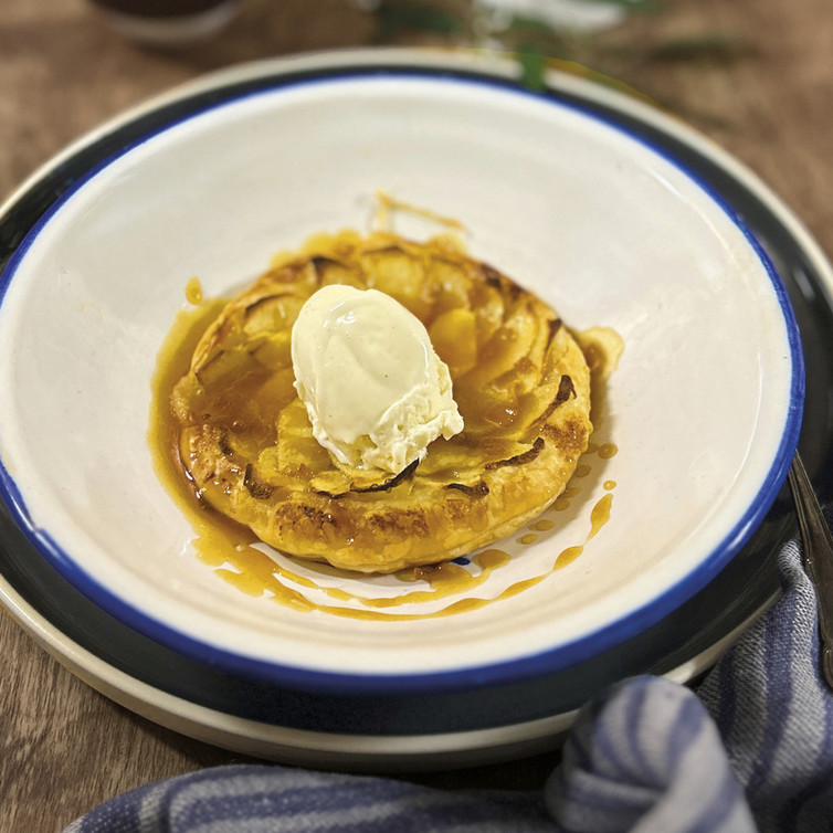 Du möchtest beeindrucken? Einen besonderen Menschen verzaubern oder vor Gästen glänzen? Dann ist dieses Dessert genau das Richtige. Es braucht ein wenig Sorgfalt und Fingerspitzengefühl – doch das Ergebnis ist spektakulär: zart-knusprige Apfeltartelettes, fein glasiert mit goldenem Ingwer-Caramel, duftend, elegant und himmlisch kombiniert mit cremigem Bio-Vanilleeis. Ein süßes Finale, das Eindruck hinterlässt – ohne aufdringlich zu sein.