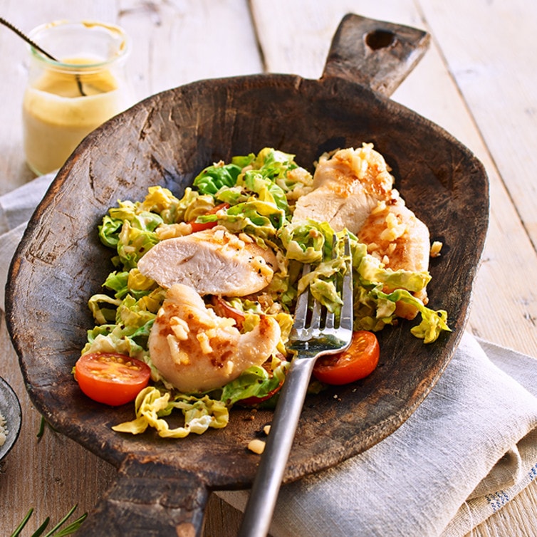De Caesarsalade is een klassieker uit de Italiaans-Amerikaanse keuken. Niet te missen is de romainesla. Geserveerd met kippenreepjes krijgt u een lichte, culinaire hoofdmaaltijd.