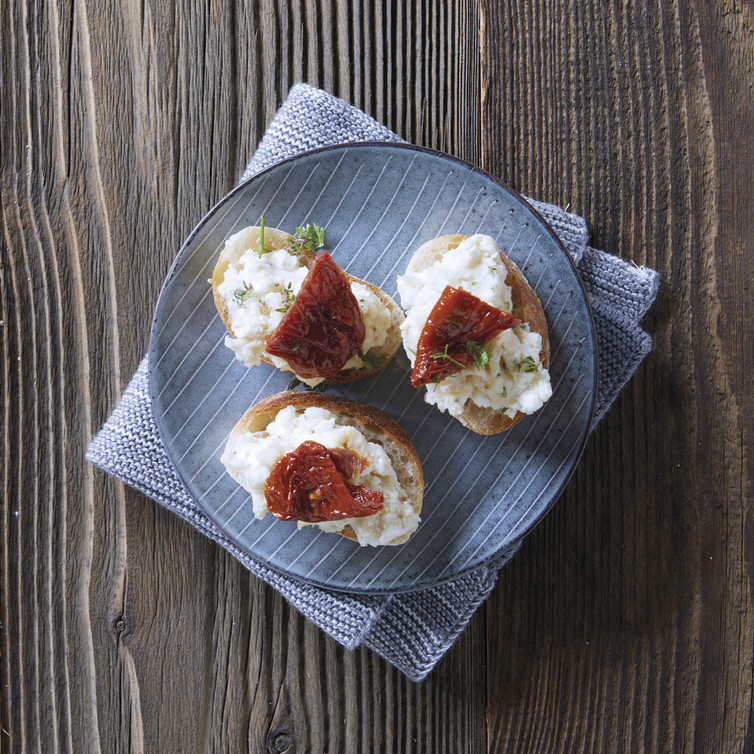 Crostini mit Bohnencreme und getrockneten Tomaten