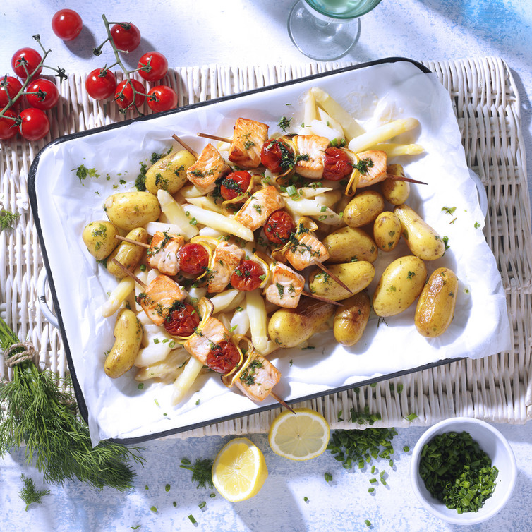 Feines Spargel-Gemüse mit Kräuter Lachs