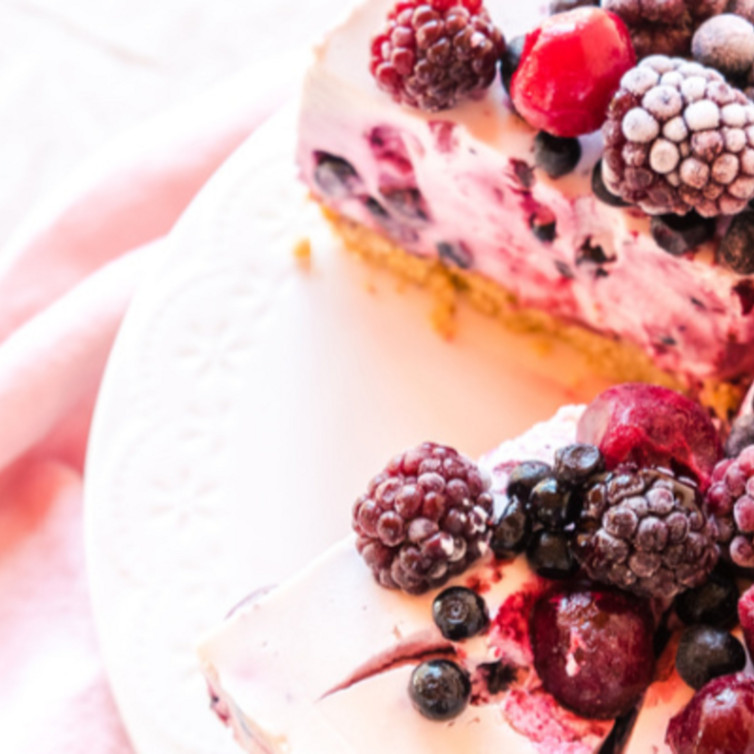 Nun die TK Beeren einfach unterrühren und den Kuchen für mindestens 5 Stunden im Kühlschrank erkalten lassen.