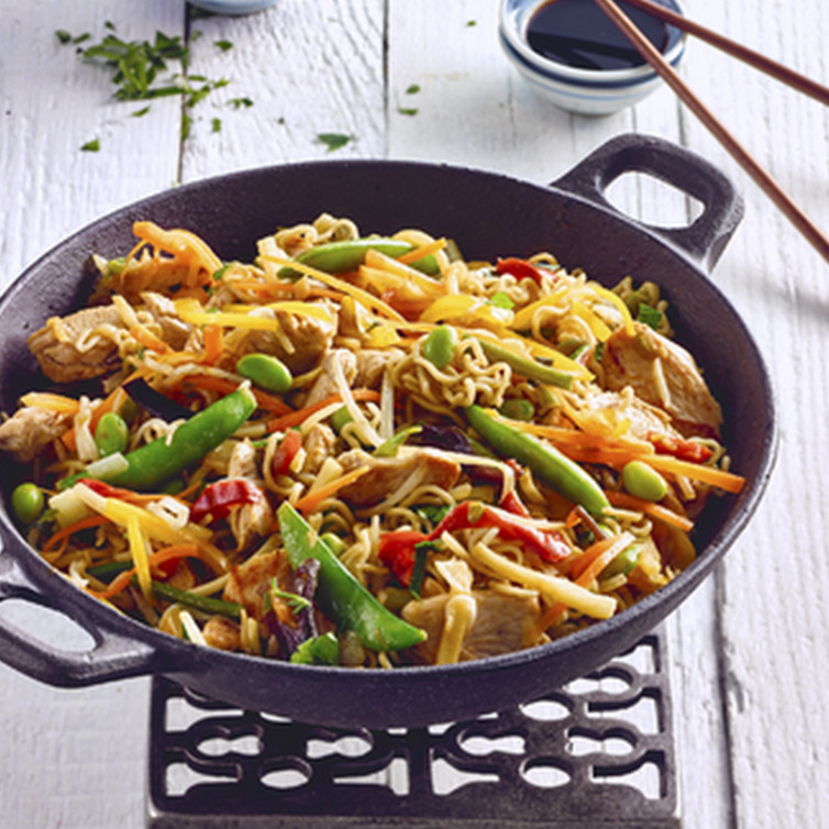 Gebratene Nudeln wie beim Chinesen mit Hähnchenstreifen