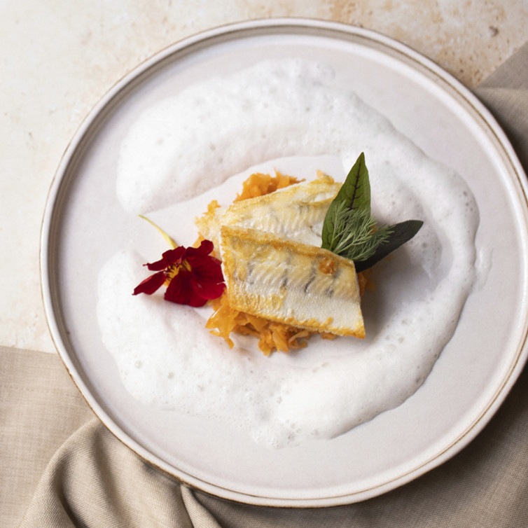 Gebratener Zander auf Paprika-Kraut mit Rieslingschaum (von Johann Lafer)