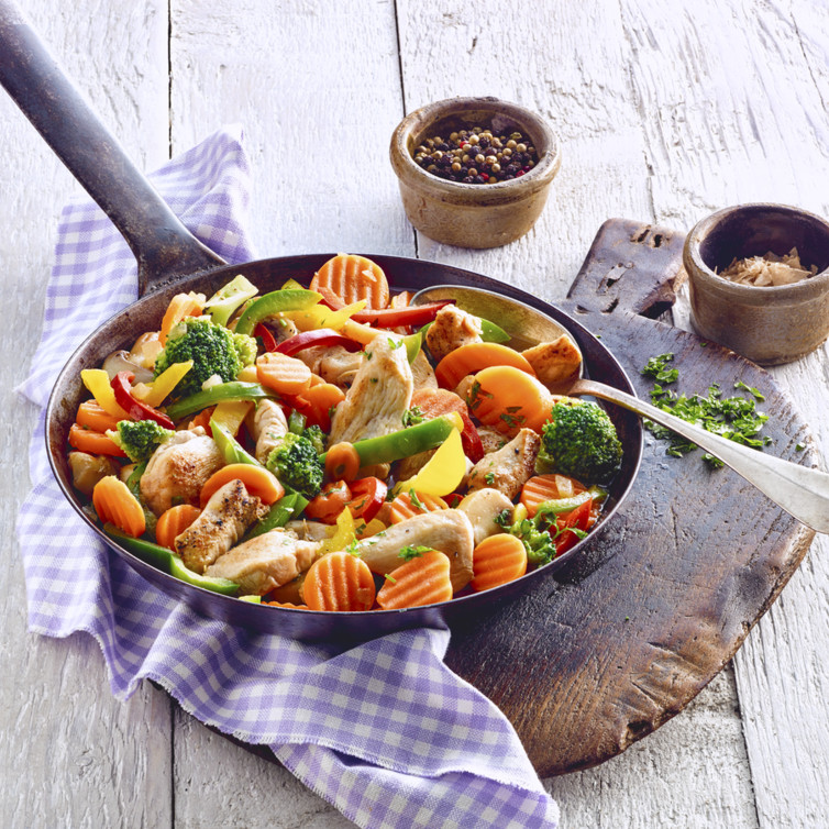 Gemüsepfanne mit Huhn