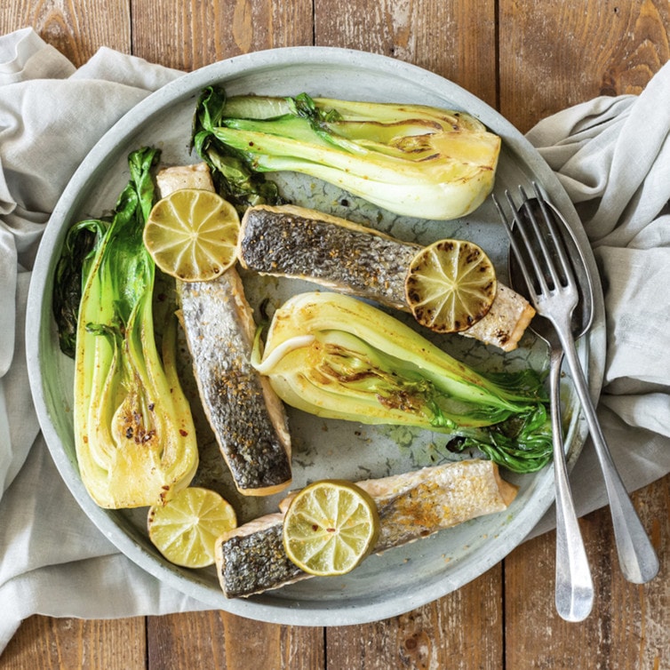 Den BIO Lachs erst mir der Hautseite grillen dann wenden. Nun den Pak Choi mit der Schnittfläche auf den Grill legen und ca. 4 Minuten grillen, dabei einmal wenden. Vor dem Servieren mit etwas Chilisalz mit Chipotle bestreuen.