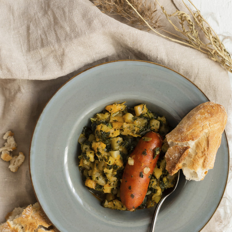 Grünkohl-Kartoffeltopf mit gegrilltem Kürbis-Chorizo