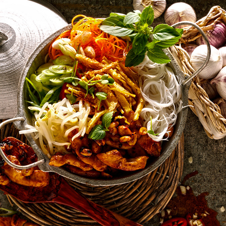 Lust auf ein schnelles, aber raffiniertes Gericht? Unsere Hähnchen Nudelpfanne „Pad Thai“ ist in nur 30 Minuten zubereitet und erfordert lediglich mittlere Kochkünste. Dieses Rezept wird in der Pfanne gebraten, sodass die Aromen perfekt miteinander verschmelzen. Ob als harmonisches Mittagessen oder für ein lockeres Abendessen – dieses asiatische Gericht bringt Abwechslung auf Deinen Tisch und macht gleichzeitig richtig Spaß beim Kochen.