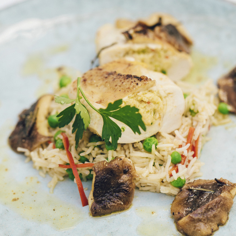 Hähnchenbrustfilet gefüllt mit Tiefseegarnelen (von Johann Lafer)