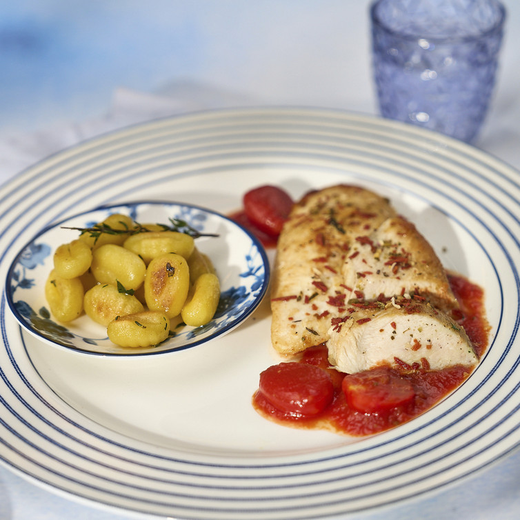 Hähnchenbrustfilet „Pomodori“ mit gerösteten Gnocchi