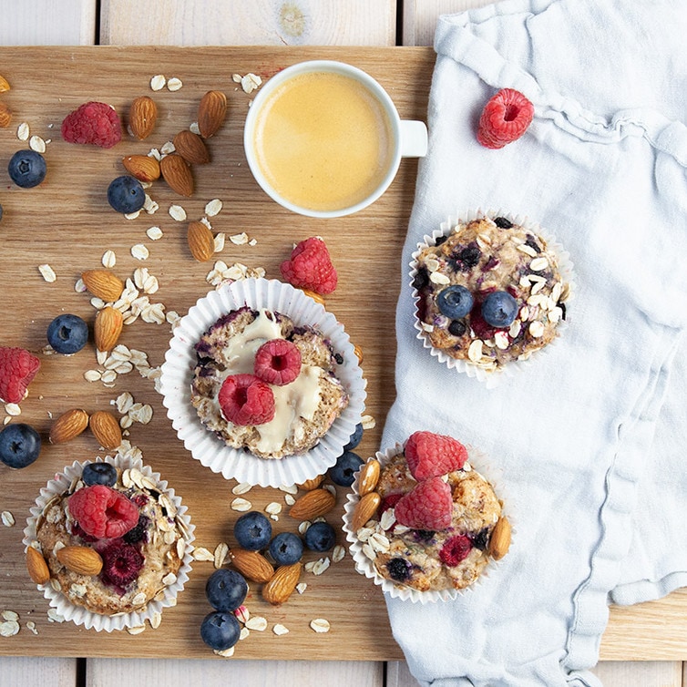 Verwarm de oven voor op 170 °C. Vul een muffinvorm met 8 vormpjes.