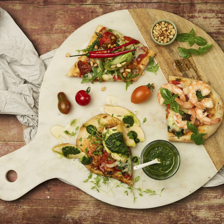 Diese Pizza ist nicht einfach eine Tiefkühlpizza, sondern die Basis für kreative Genussmomente. Durch die drei unterschiedlichen Toppings – mal mit Garnelen, mal frisch und knackig mit Rucola und Tomaten oder herzhaft mit Hähnchen und Pesto – wird aus einem Produkt gleich ein vielseitiges Geschmackserlebnis. So können alle am Tisch ihre Lieblingsvariante genießen, ohne viel zusätzlichen Aufwand.