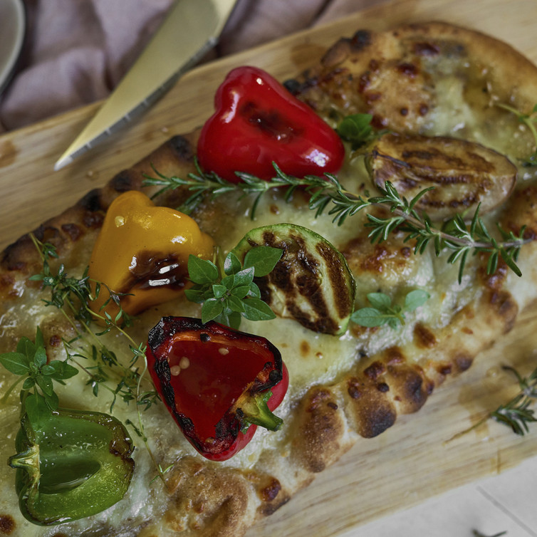 Johanns Pizza mit mediterranem Gemüse aufgelafert (von Johann Lafer)