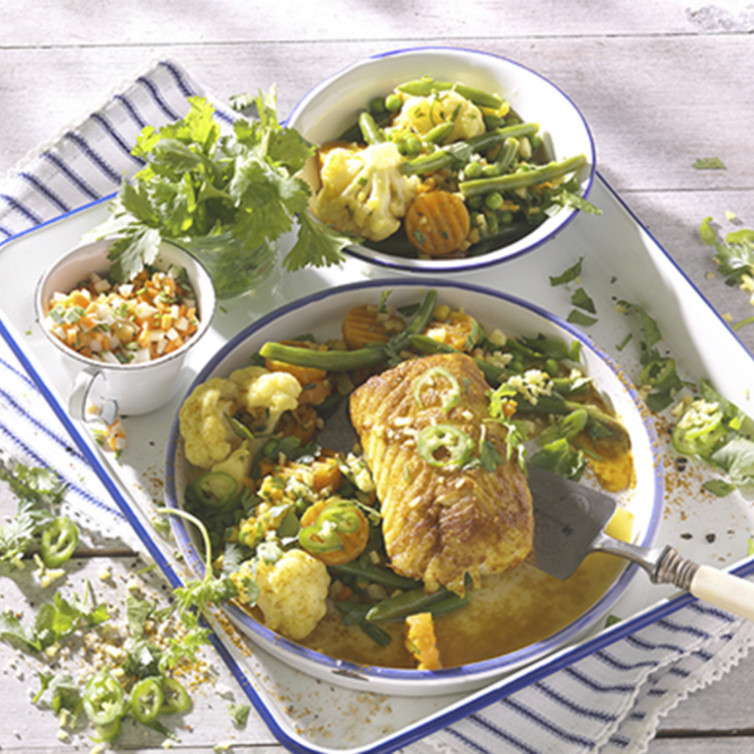 Kabeljau " indisch" auf Currygemüse
