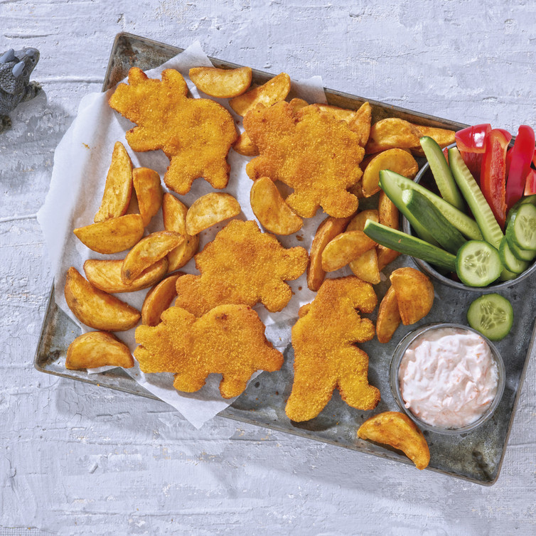 Knusprige Dino-Wedges mit Dip