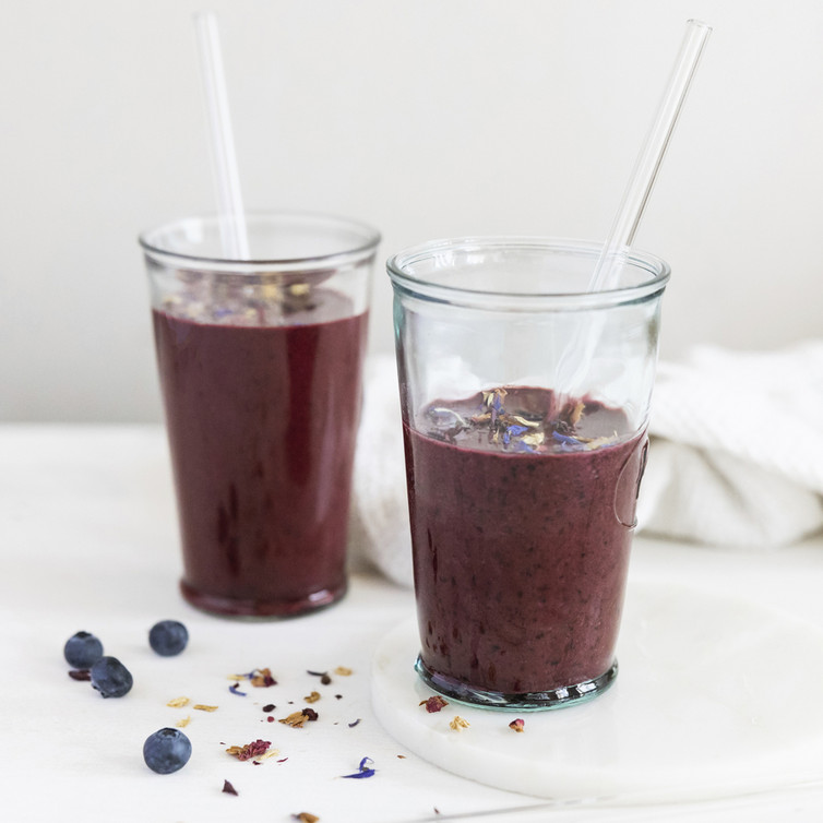 Kokos-Waldheidelbeer Smoothie mit Blütenpolen