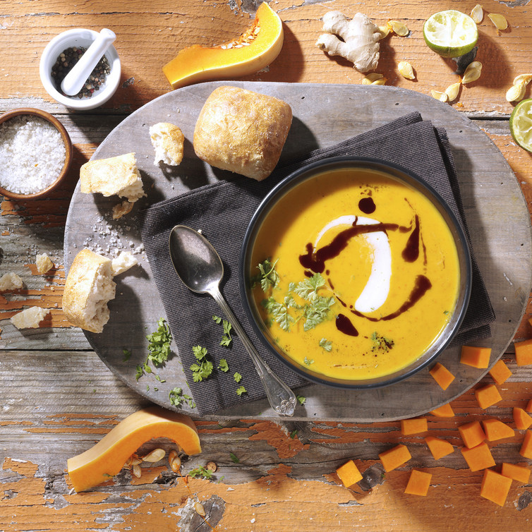 Suppe fein pürieren, mit Limettensaft, Ahornsirup und Frischkäse verfeinern und mit den Gewürzen abschmecken.