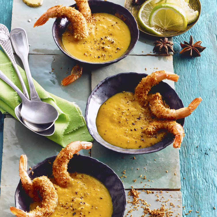 Kürbissuppe mit Garnelen und Kokos