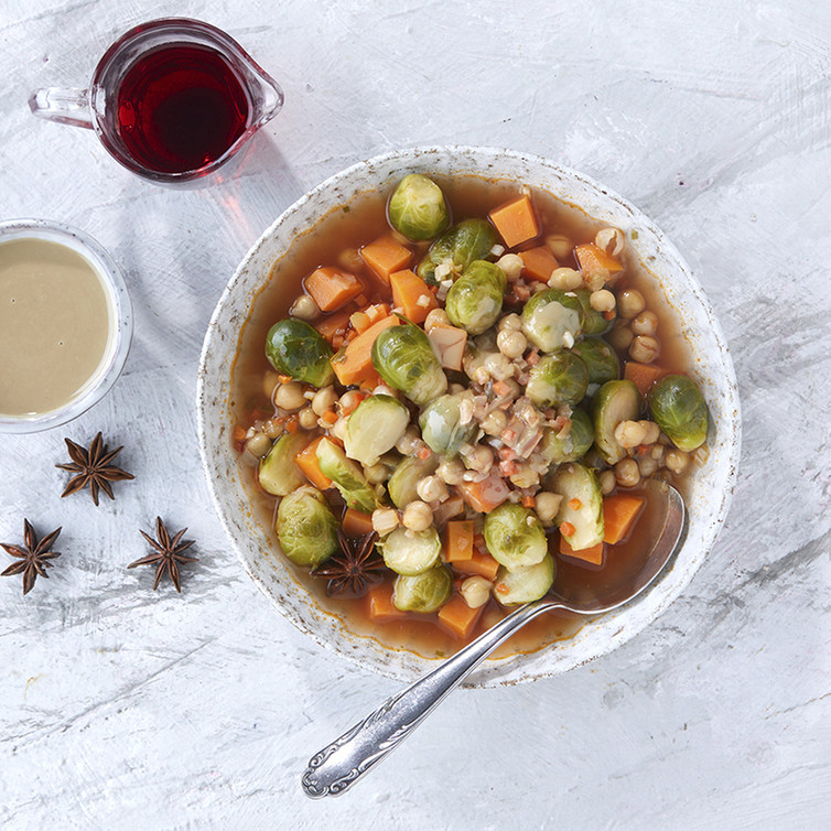 Orientalischer Rosenkohl-Süßkartoffel-Eintopf