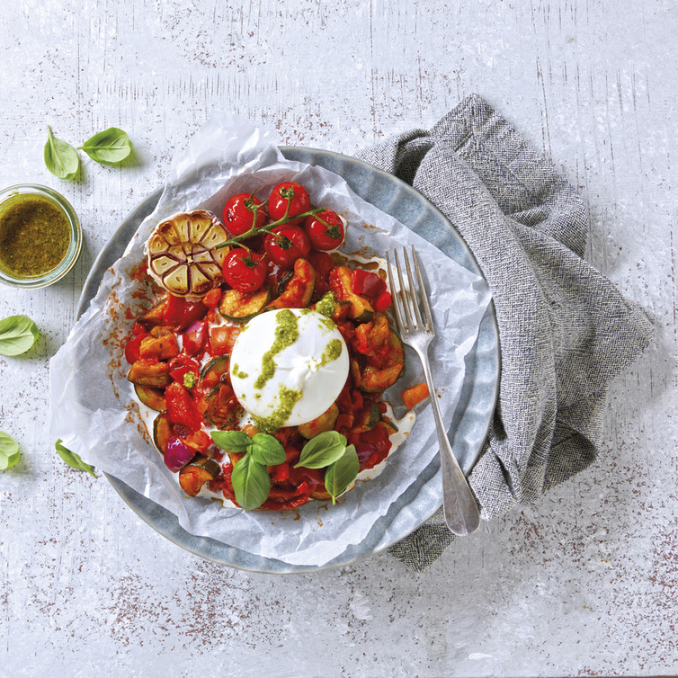 Papillotte Ratatouille mit Burrata