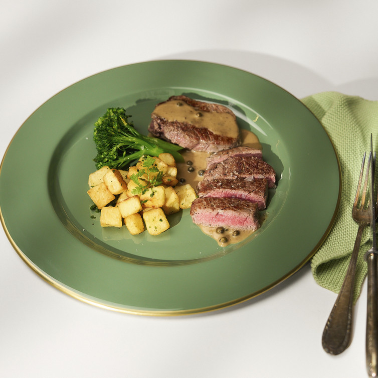Dieses Gericht von Johann Lafer verbindet klassische Eleganz mit kräftigen Aromen: Zartes Rinderfilet trifft auf eine cremige Cognac-Pfeffer-Sauce mit feiner Schärfe, begleitet von knusprigen Röstkartoffeln und aromatischem Bimi. Die Komponenten ergänzen sich perfekt und machen das Gericht ideal für ein besonderes Menü, bei dem Genuss und Struktur gleichermaßen im Fokus stehen.