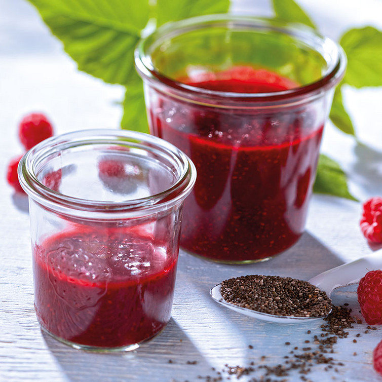 Die Himbeeren auftauen lassen, mit der Gabel zerdrücken und im Topf kurz erhitzen. Durch ein Sieb streichen, um die Kerne zu entfernen und etwas abkühlen lassen. Nun den Chiasamen und den Ahornsirup unterrühren und direkt genießen. Diese Marmelade hält sich maximal 5 Tage im Kühlschrank.