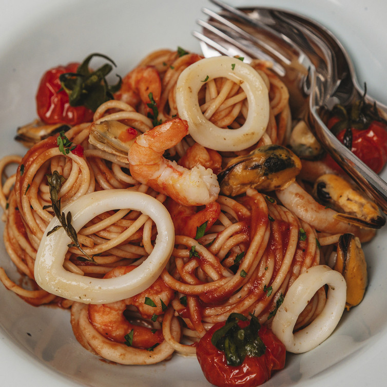 Spaghetti Frutti di Mare mit konfierten Kirschtomaten
