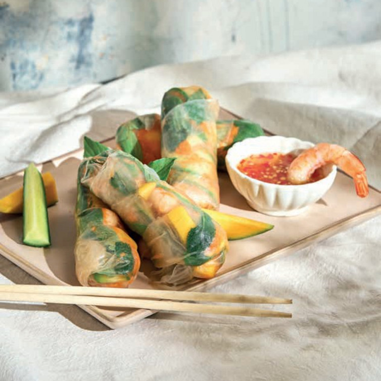Deze lichte en aromatische rolls brengen de Aziatische streetfood-smaak naar je bord. Knapperige groenten, fruitige accenten en sappige garnalen worden opgerold en geserveerd met een zoet-pittige dip. Perfect als fingerfood of als zomers voorgerecht.