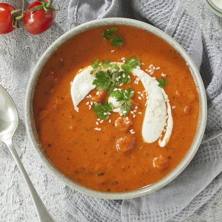 Tomatensuppe mit Tahini-Sauerrahm