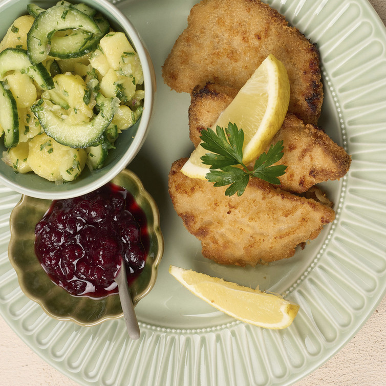 Wiener Mini-Schnitzel vom Schwein auf Johanns Kartoffel-Gurken-Salat