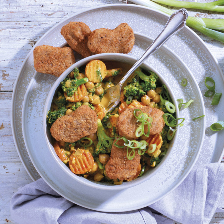 Winterliches Gemüsecurry mit veganen Nuggets