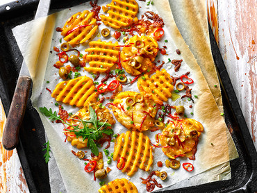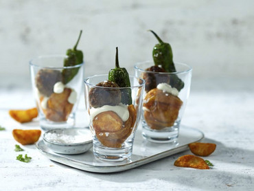 Amuse van mini-gehaktballetjes en aardappelpartjes