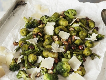 Groene ovengroenten met Parmezaanse kaas en hazelnoot