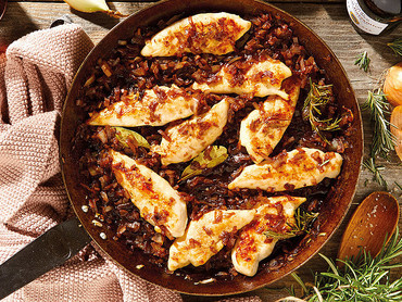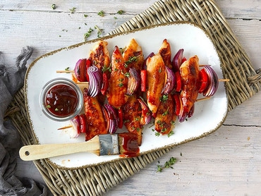 Gemarineerde kipfilethaasjes met balsamico-uitjes