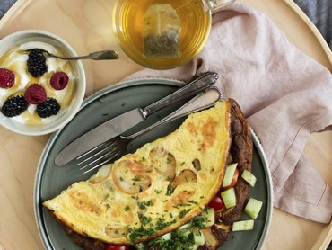 Gelaagde winterkabeljauw en aardappel-dumpling