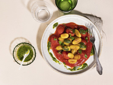 Gnocchi mit Tomatensauce, Basilikum und Pesto (von Johann Lafer)