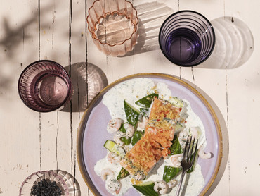 Lachsfilet mit Tiefseegarnelen-Gurken-Schmand (von Johann Lafer)