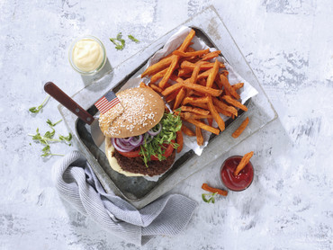 Kein Hack-Burger mit selbstgemachtem Balsamico-Ketchup und veganer Mayo