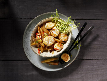 Gegrillte Jakobsmuscheln mit Spargelsalat