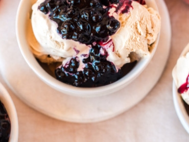 Eiscreme mit Beeren-Tonkabohnen-Sauce