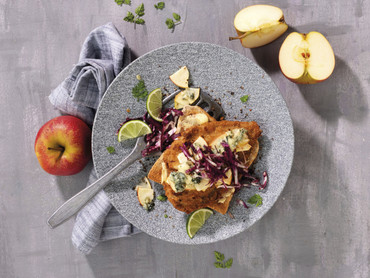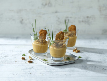 Vegane Nuggets mit Kürbis-Humus und Walnuss-Pesto