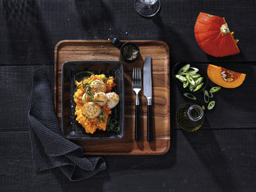 Jakobsmuschel gebraten auf einem feinen Kürbis-Sahnepüree