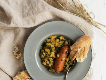„Stampf“ Kürbis mit Grünkohl und Kichererbsen