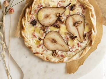 Elsässer Flammkuchen Birne-Munster-Walnuss