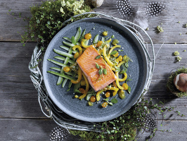 Lachsfilet auf frischem Gemüse