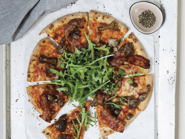 Pizza mit Speck und Pilzen
